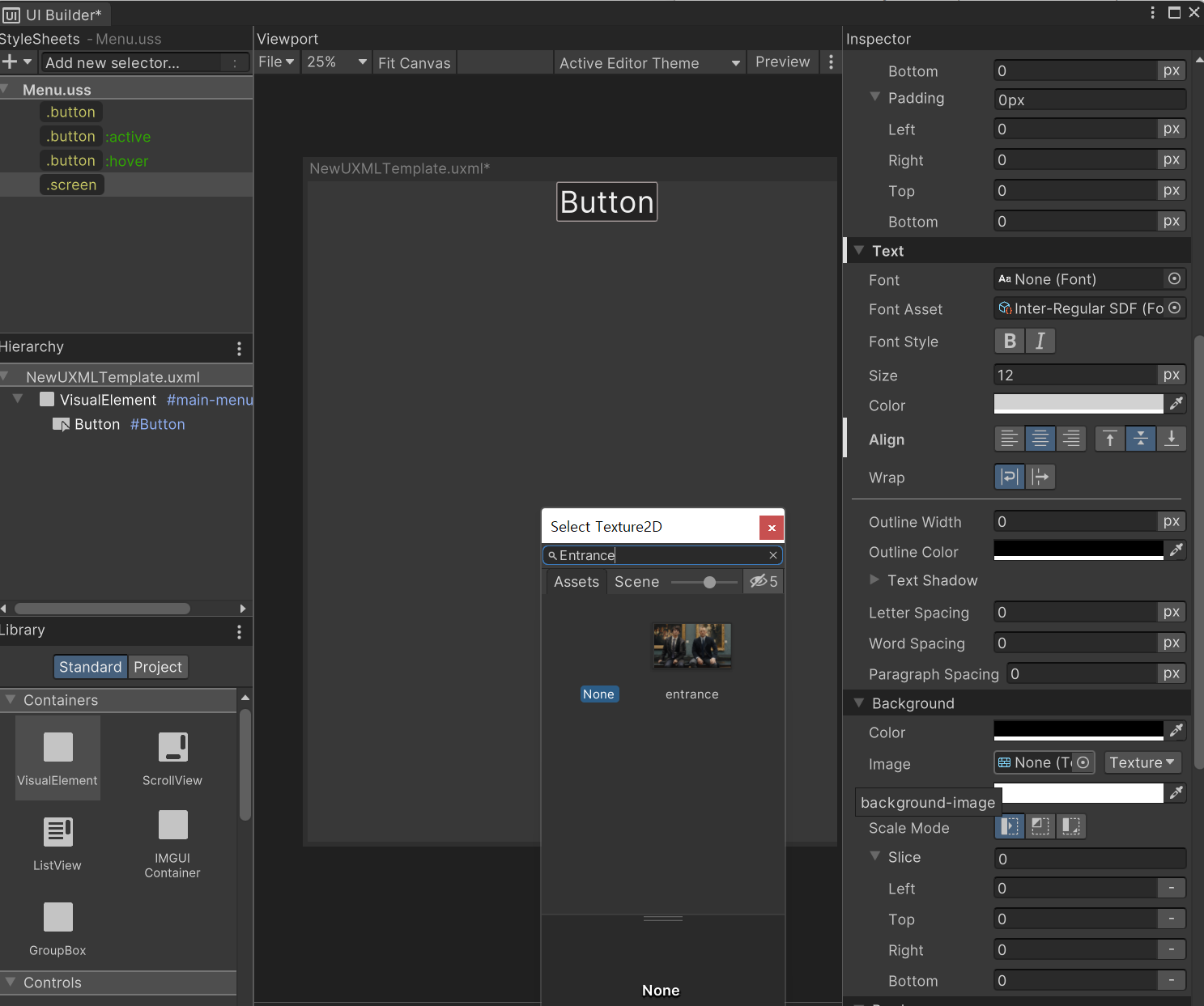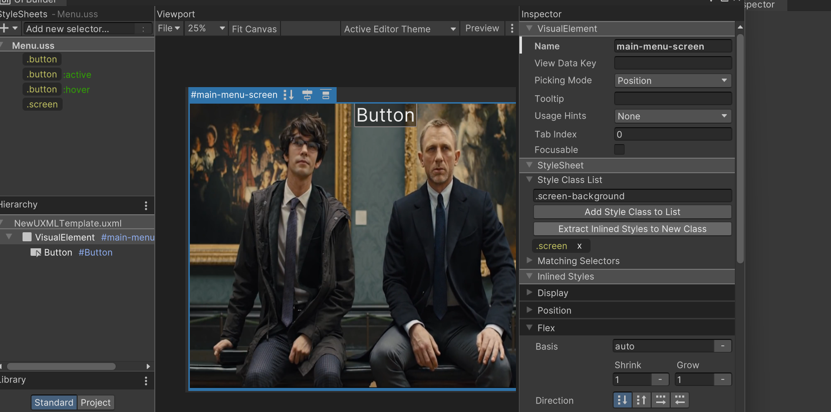 VisualElement 생성 > (우클릭)Rename > main-menu-screen