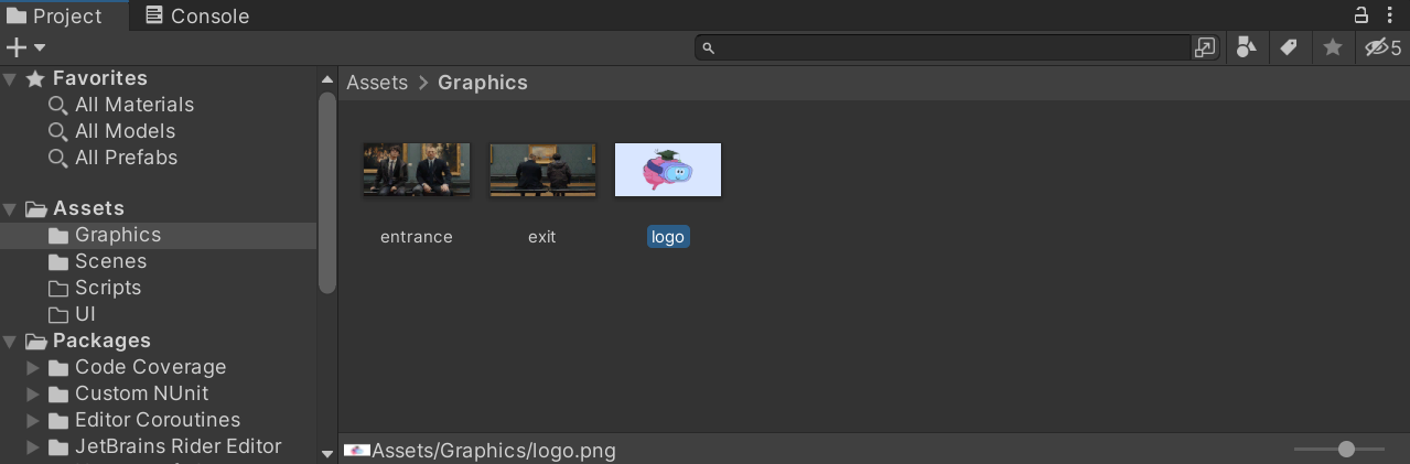 Assets > (우클릭) Create > Folder > Graphics / Scripts / UI 폴더 생성