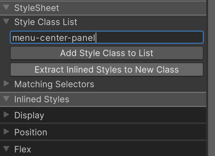 Style Class List > menu-center-panel 입력 > Extract Inlined Styles to New Class > (우측 메뉴바에) .menu-center-panel 생성